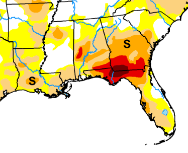 This part of the country has some of the worst drought right now, with the Florida Panhandle and parts of Southwest Georgia in the extreme category: