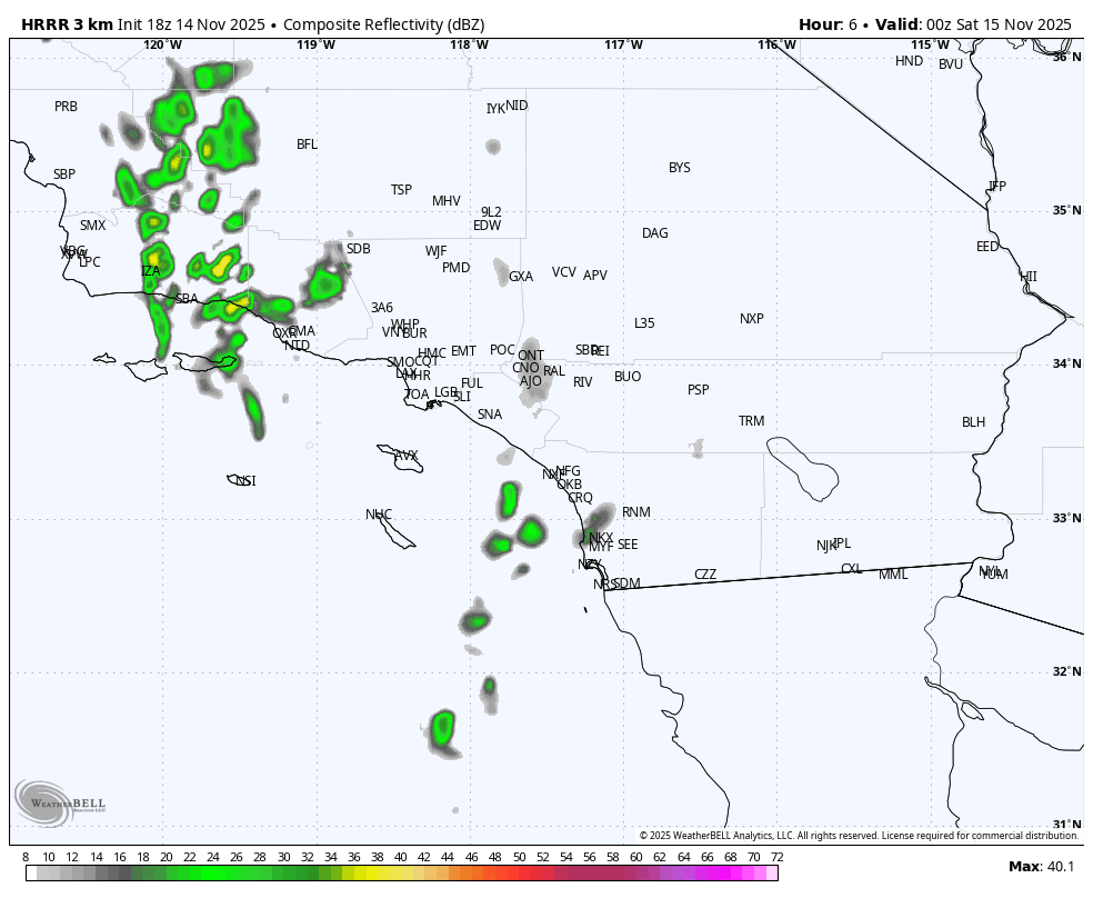 A brief lull Friday afternoon and evening will come to a screeching halt as an extremely heavy band of rain will move through early Sat AM. The future radar loop below goes from 5 pm PT on Nov 14 to 5pm PT on Nov 15: