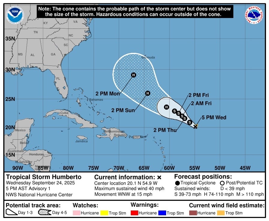 It is also important to note that the hurricane models being ran on these systems have both intensifying into at least tropical storms, if not hurricanes and the official forecast from the NHC for Humberto is for a Hurricane by Saturday: