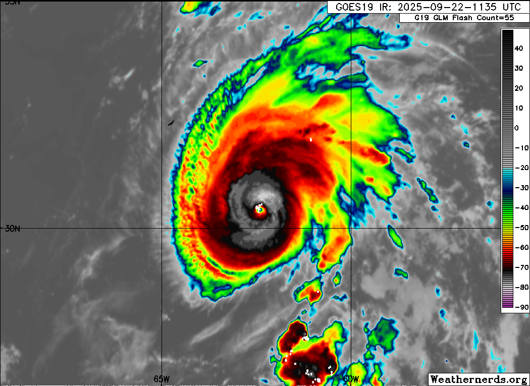 In case you missed it, not only did Gabrielle become the second hurricane of the 2025 Atlantic Season, but it also became the second major hurricane. Gabrielle underwent rapid intensification overnight Sunday into Monday and became a major hurricane with winds of 120 mph by 11 am ET, an increase of 55 mph from the 11 pm advisory on Sunday when it only had winds of 75 mph.