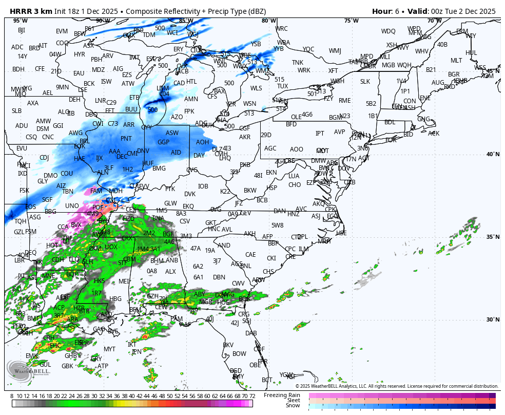Unfortunately for the I-95 corridor, most of the precip will fall as a cold rain. The general timing is below from 7 pm ET Mon Night to 1 am ET Wed Morning: